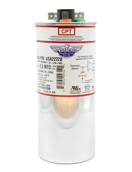 $39.35MARS USA2222B AmRad 75/5 MFD 440/370V Round Motor Run Capacitor Made in the USA 370/440 V single and dual capacitance 5 Year Warranty Filled w/ a ...