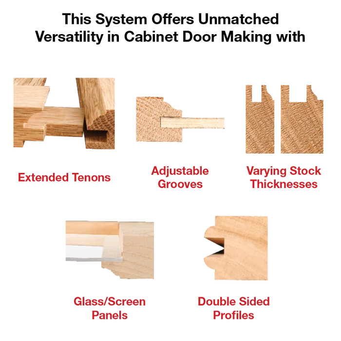 - Patented Extended Tenon Capability for milling extra-strong long tenon joints